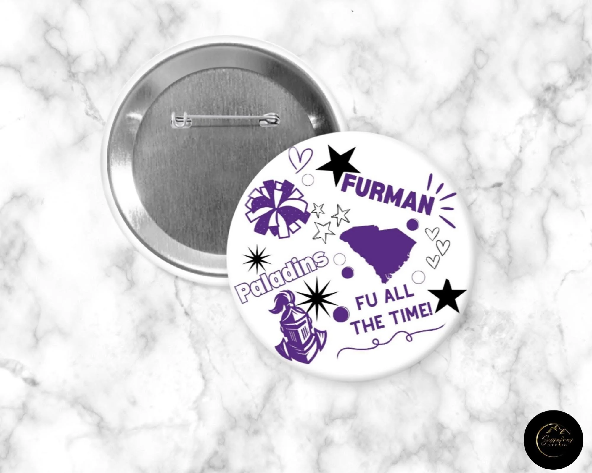 Buttons never go out of style - neither do we! We are the perfect accessory to your gameday outfit, holiday getup, or family vacation trip. We are always adding new buttons and styles to our shop. We are also available to make custom buttons. You can see some of our designs below!
