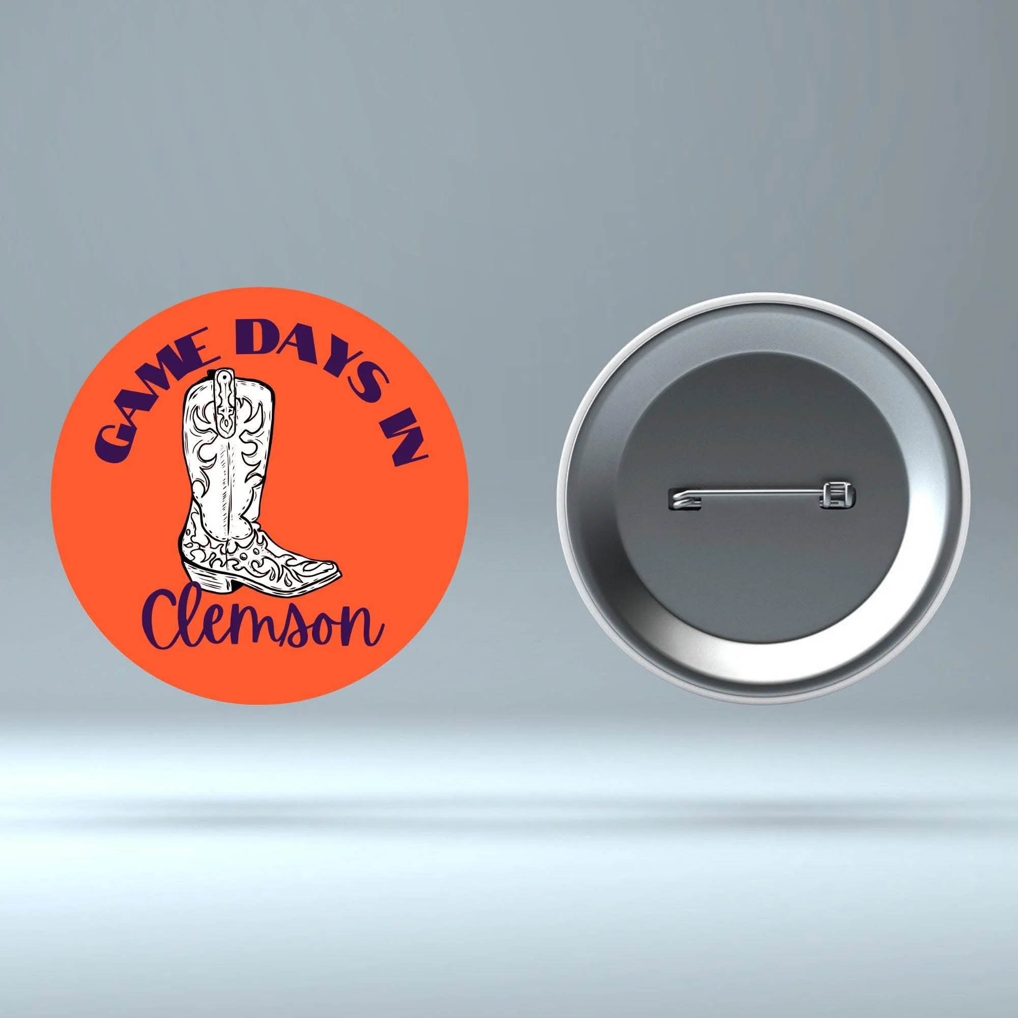 Show your team pride with this gameday button! Add a magnet to the pack to prevent damage to clothing.